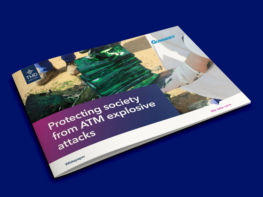 8 October 2019 – AMSTERDAM–(BUSINESS WIRE)–TMD Security announced today the release of a new whitepaper, ‘Protecting society from ATM explosive attacks’, created with Gunnebo, world-leading manufacturer of ATM safes. The paper highlights that the unprotected cash inside the ATM is the root cause of the escalating global problem of ATM violence and the advocated solution is passive note-staining technology to ‘spoil the prize’ and deter the criminal combined with high-security safes to protect against traditional attacks.